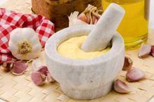 Le jour de la préparation piler les gousses d'ail dans le moule.