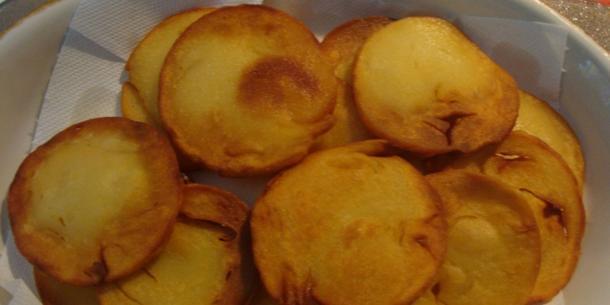 Laisser refroidir, puis découper chaque galette en frites larges qui seront plongées dans une friture bouillante d'huile d'olive.